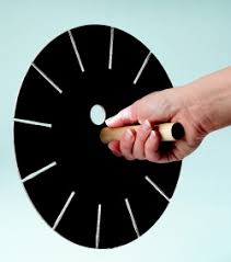 2. Gambar stroboskop dengan 11 celah. Tangan memegang pemutar stroboskop.